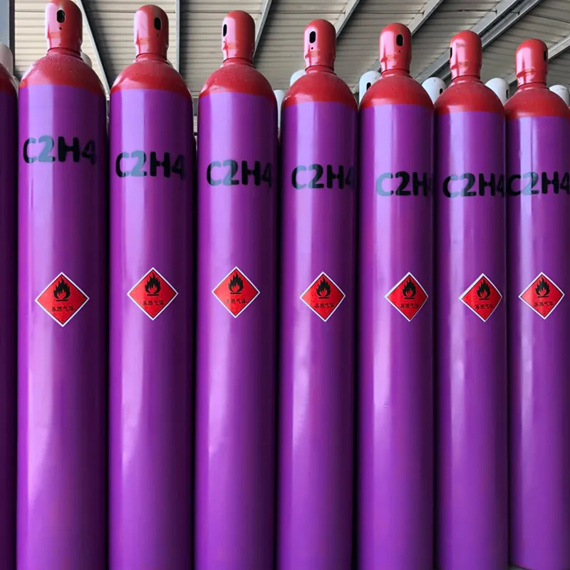 Under normal conditions, ethylene is a colorless, slightly odorous, and flammable gas with a density of 1.178g/L, slightly less dense than air. It is nearly insoluble in water, not soluble in ethyl alcohol, and slightly soluble in alcohols, ketones, and benzene. It is soluble in ethyl ether and highly soluble in organic solvents like tetrachloromethane. Ethylene is an essential raw material in the chemical industry, primarily used for producing polyethylene, ethylene-propylene rubber, and polyvinyl chloride. It is one of the fundamental raw materials in petrochemicals. In synthetic materials, it is widely used in the production of polyethylene and vinyl chloride. In organic synthesis, it is used for the production of ethyl alcohol, ethylene oxide, ethylene glycol, acetaldehyde, and propylene. Halogenation of ethylene can produce vinyl chloride, chloroethane, and bromoethane. Ethylene is also used as a standard gas for petrochemical analysis, an eco-friendly ripening agent for fruits like oranges, tangerines, and bananas, and in the synthesis of pharmaceuticals and high-tech materials. Additionally, it is used in the production of automotive specialty glass and as a refrigerant, particularly in LNG liquefaction plants.