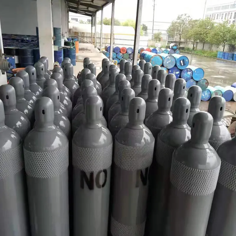 Nitric oxide is an inorganic compound, appearing as a colorless gas at standard temperature and pressure. It is sparingly soluble in water but soluble in ethyl alcohol and carbon disulfide. At room temperature, NO readily oxidizes to nitrogen dioxide (NO2) and reacts with halogens to form nitrogen oxyhalides (NOX). Nitric Oxide finds applications in semiconductor production for oxidation and chemical vapor deposition processes, atmospheric monitoring as a standard gas mixture, and in the manufacture of nitric acid, silicon oxide films, and nitrosyl carbonyl. It is used as a bleaching agent for synthetic silk and as a stabilizer for propylene (C3H6) and dimethyl ether. In medical clinical experiments, it serves as an adjunct for diagnosis and treatment, as well as a stabilizer in organic reactions.